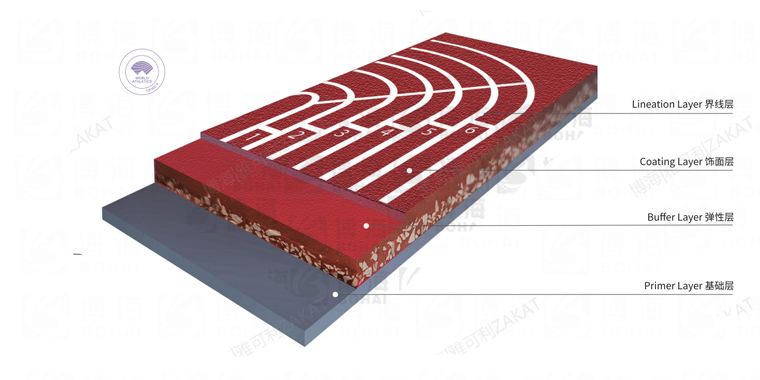 采用EDPM橡膠顆粒作為底層,聚氨酯底膠封底,聚氨酯面漆和膠漿作為面層鋪設(shè)而成,具有彈性好、色澤鮮艷、強(qiáng)度高、耐磨、防滑、耐低溫、防震隔音經(jīng)久耐用等特點(diǎn)。由于其采用獨(dú)特的聚氨酯PU封底,在高寒地區(qū)雨雪延伸不進(jìn)塑膠跑道彈性層,是我國(guó)高寒地區(qū)首選體育運(yùn)動(dòng)場(chǎng)地田徑跑道產(chǎn)品。